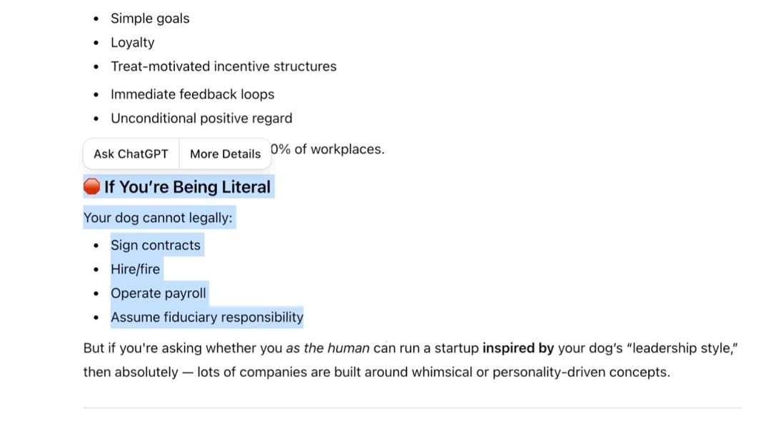 我在考虑让我的狗来运营我的创业公司,你怎么看?