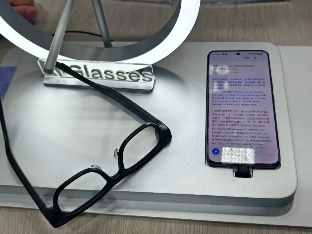 此次MWC上,讯飞展出了他们的首台AI眼镜,切入的场景是翻译。不过,这台眼镜最特别的功能在于,当你置身高噪音的展会、鸡尾酒会时,这台眼镜内置的唇动识别多模态降噪解决方案就将发挥大作用。