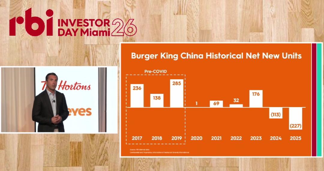 他表示,汉堡王中国就是一个主要例子。“我们将于2026年恢复收取特许权使用费,这将对我们2026年的营业收入增长起到一定的推动作用。特许经营费的初始水平将比汉堡王标准的5%国际费率低几个百分点,并会根据合同约定逐步提高至全额费率。随着汉堡王在中国的业务规模扩大,这将为营业收入增长带来内在的推动作用。”