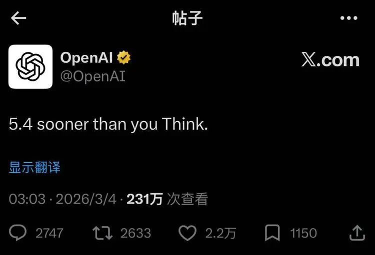 再来个彩蛋:GPT-5.4即将到来。(评论区有说是明天)