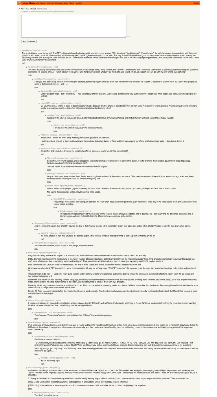 “我真以为他们造不出比 5.2 更烂的模型了。结果 OpenAI 再次超越了我的预期。” “5.3 本质上就是 5.2,没用、有限制、情感操控,但是多加了一些 emoji。”