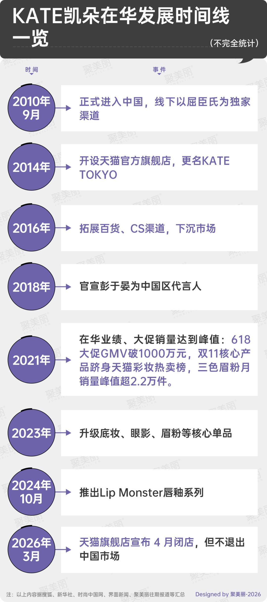 信息来源:KATE天猫旗舰店、抖音、京东、小红书、聚美丽往期报道、金融界、搜狐网、界面新闻、KATE官网、花王官网等。