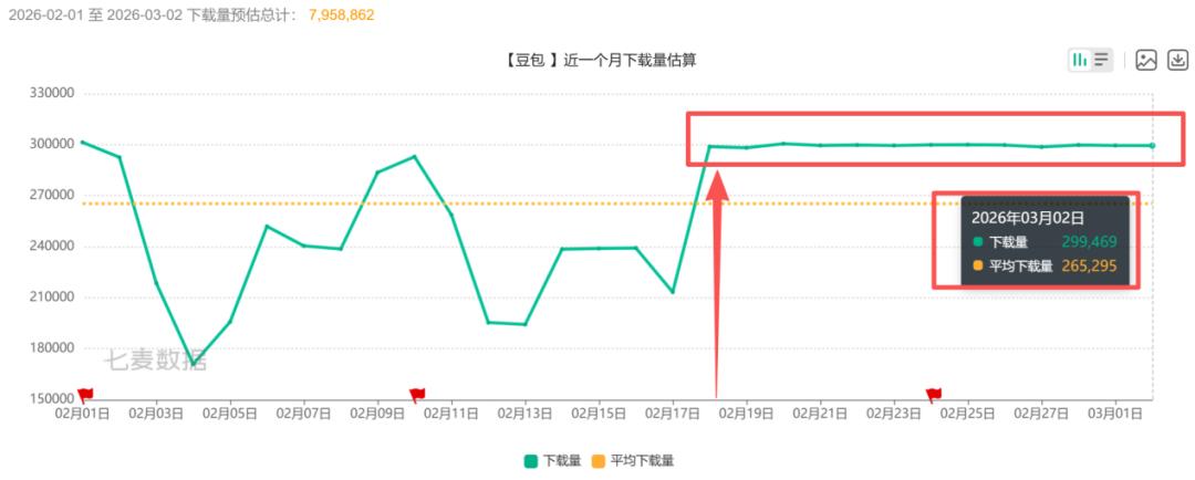 以豆包为例,2月10日宣布春节红包玩法后,5日后豆包iOS端日均下载量从官宣当日的29.29万,下降到了23.89万,下滑约18.44%。不过,在此之后,豆包日均下载量开始振荡上扬,在2月18日提升至约30万/日后,开始稳定至今。截至3月2日,豆包日下载量仍稳定在约29.95万水平,较官宣当日上涨约2.25%。