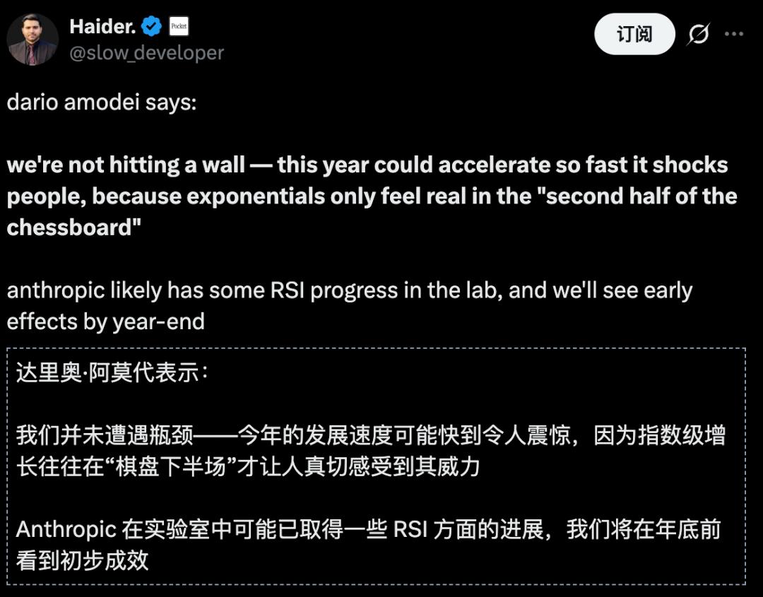 如果RSI真的在2026年取得突破,那么AI的进化速度将从指数增长变成指数的指数增长。