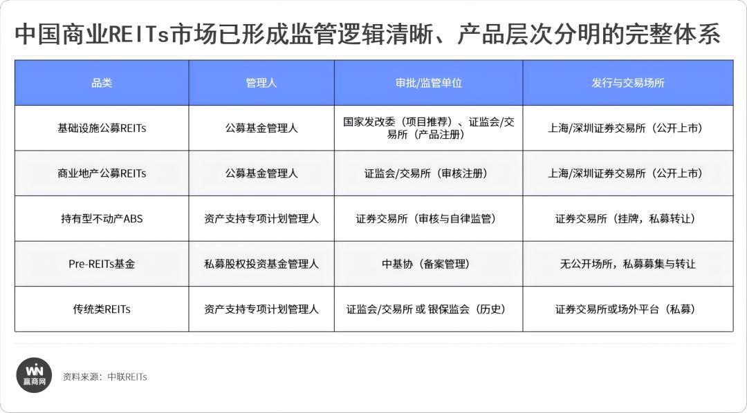 目前,中国商业REITs市场已形成监管逻辑清晰、产品层次分明的完整体系。各品类均有其明确的正式名称与监管定位,共同服务于存量资产的盘活与转型升级。