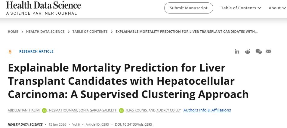 相关成果以「Explainable Mortality Prediction for Liver Transplant Candidates with Hepatocellular Carcinoma: A Supervised Clustering Approach」为题,发表于 Health Data Science。