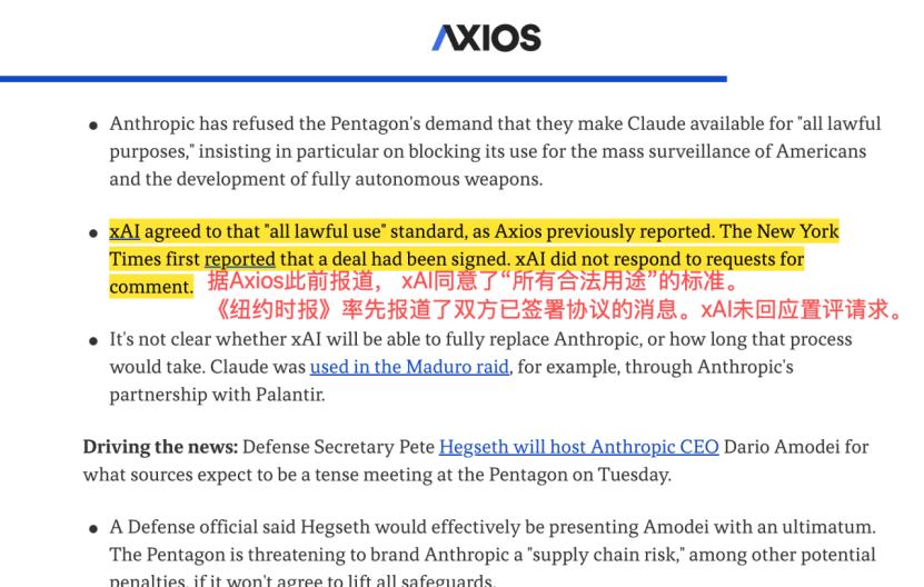 在Anthropic因为“红线”不惜和DoW交恶的时候,xAI只是耸耸肩,说:它不做我做呗。