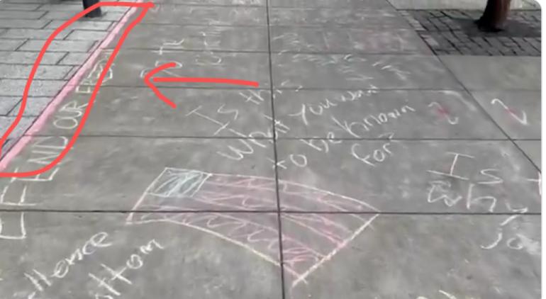 最具标志性的,是有人在人行道上画上长长的“红线”,围住总部建筑,意指DoW(战争部)和Anthropic之间的争议核心。