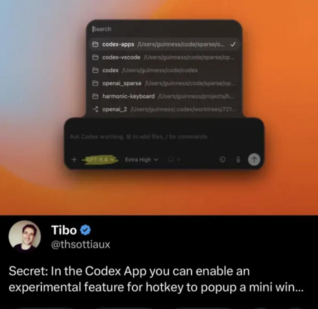 接下来,更戏剧性的一幕出现:OpenAI Codex团队的一名员工Tibo 在社交平台上发布了一张截图。图中,模型选择器里赫然写着GPT-5.4。