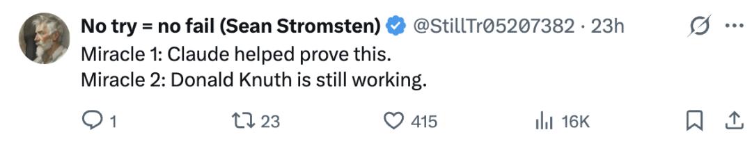 这直接让向来对生成式AI持保留态度的高德纳在文章最后写道: