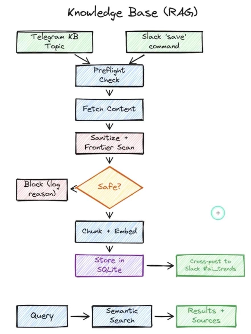 他现在往Telegram丢文章、YouTube链接或X帖子,OpenClaw就会自动抓取全文(包括X线程里的外链)并向量化存起来,支持在Slack里跟团队共享。