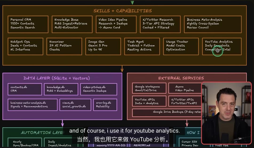 这套系统甚至能自我更新提示词、修复bug,用Humanizer技能去掉AI感,越用越聪明。