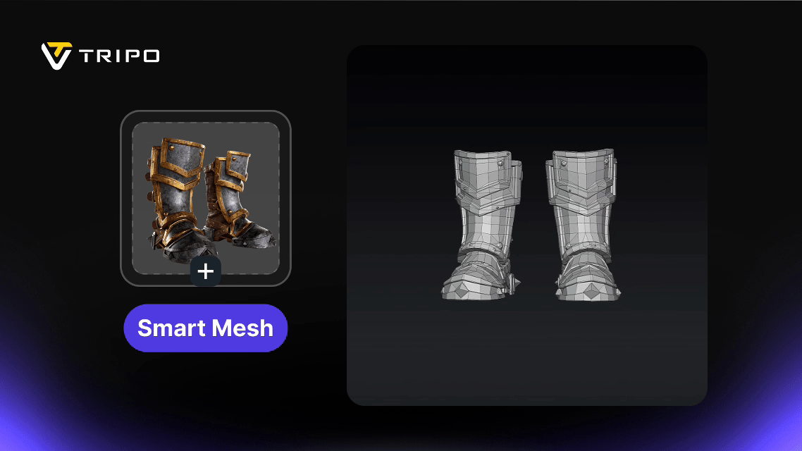过去的三维网格体生成,往往受困于序列化的妥协:冗长的序列化数据严重制约了生成的效率,而单向的因果偏置更扼杀了空间的全局交互。直到Tripo P1.0 重构空间生成的底层范式,行业才彻底改变这一困境。基于它的Smart Mesh(智能网格)功能,目前也已经在Tripo Studio平台上线。