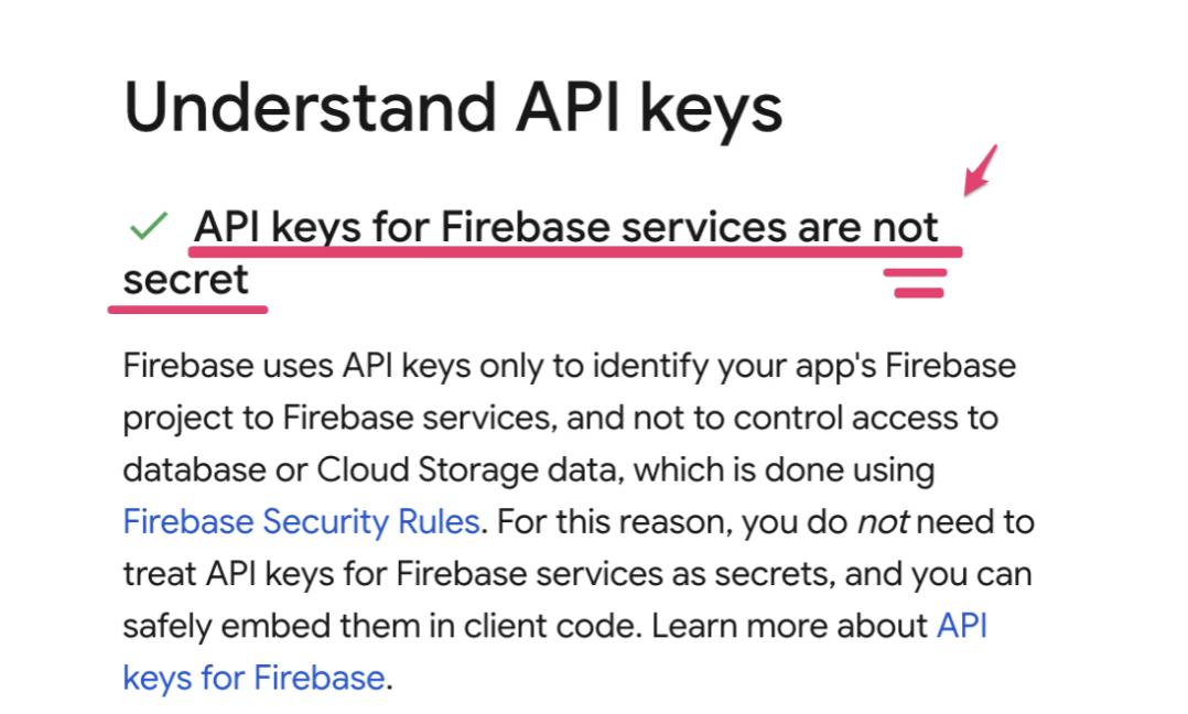 多年来,Google 一直明确告诉开发者,API Key 可以安全地嵌入客户端代码中。Firebase 官方的安全清单中也明确指出,API Key 并非机密信息。