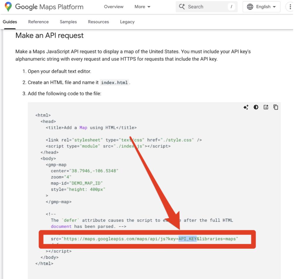 Google Maps JavaScript 文档也指导开发者,将 API Key 直接粘贴到 HTML 中。
