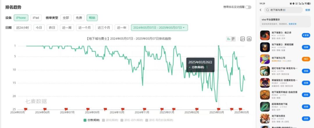 作为腾讯旗下的爆款手游,在离开了部分安卓渠道后,并没有多少影响到其成绩,在当年多次登上iOS畅销总部第一。值得一提,时至今日,《地下城与勇士:起源》在部分安卓渠道仍未上架。