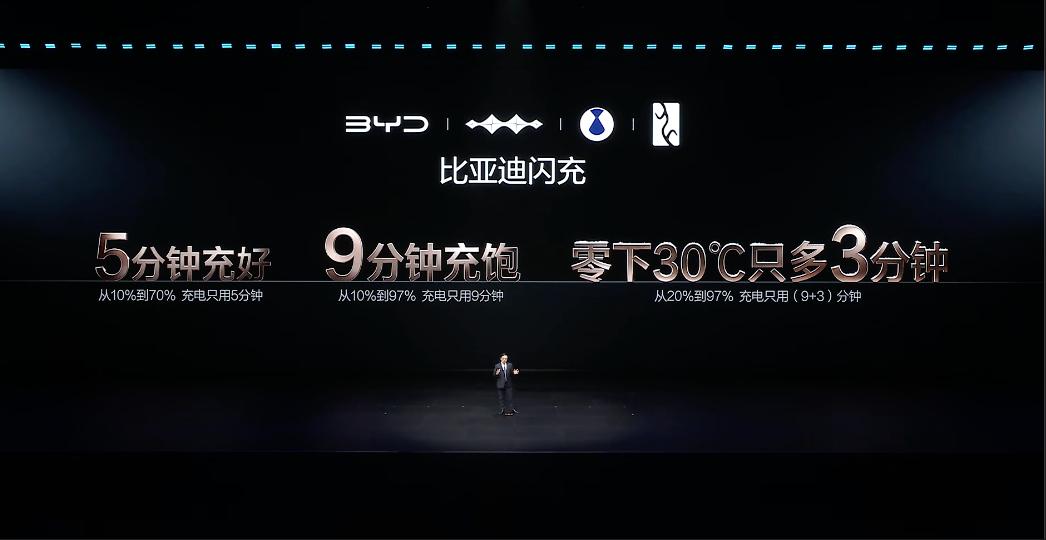 续航千公里级,闪充5分钟级,极寒闪充10分钟,闪充站嘛,万座级别~