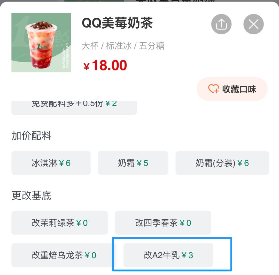 第一、我观察到,在1点点的菜单上,尽管许多产品都有“加3元更换A2牛乳”的选项,但有行业人士透露:选择默认植脂末的占比仍然是绝大多数。