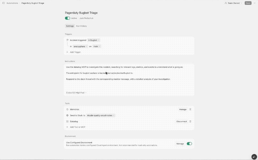 这些Agent可按开发者定时任务运行,或由发送Slack消息、新建Linear工单、合并GitHub PR、发生PagerDuty告警等各类事件触发。开发者也可通过Webhook配置自定义事件。