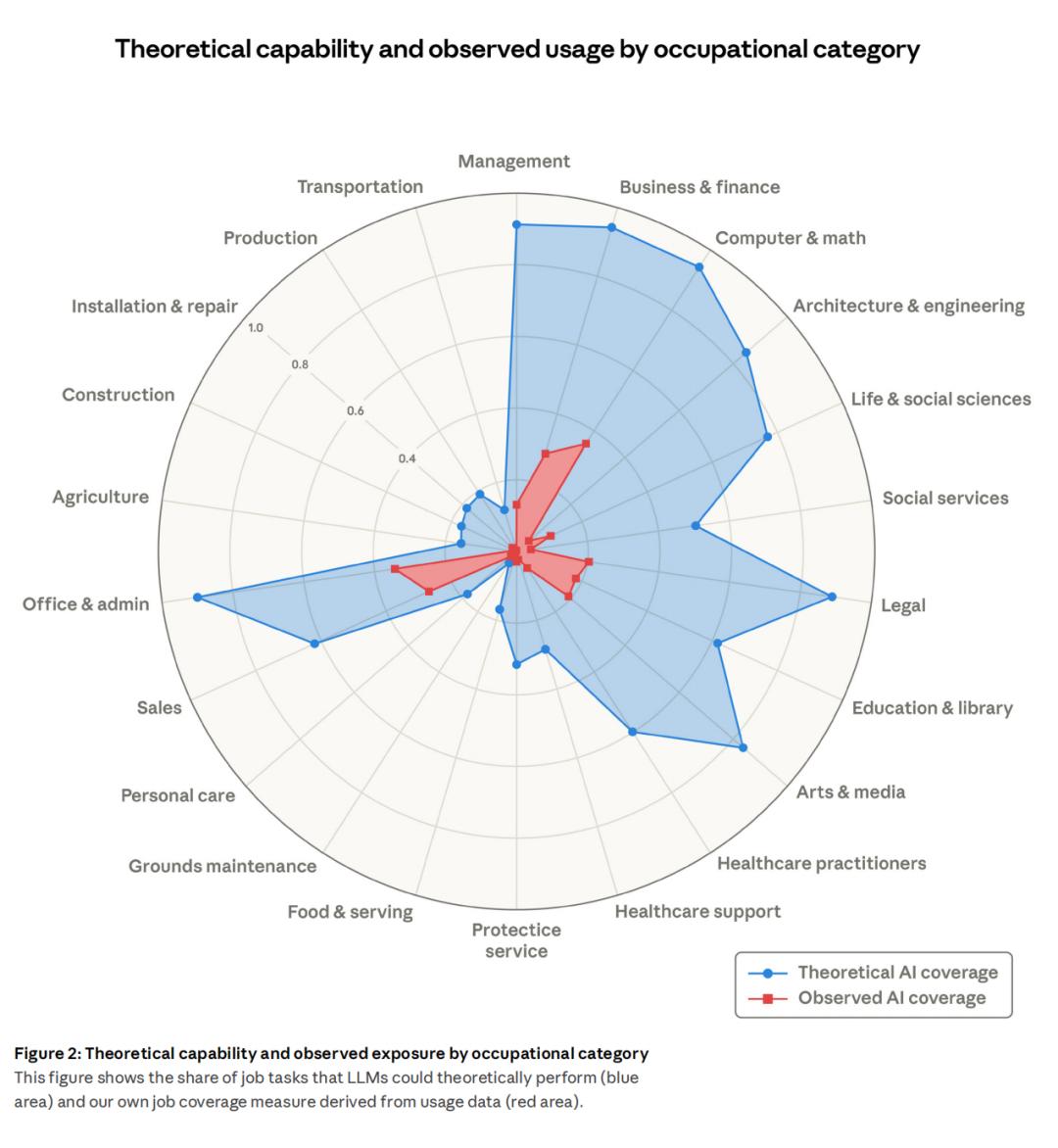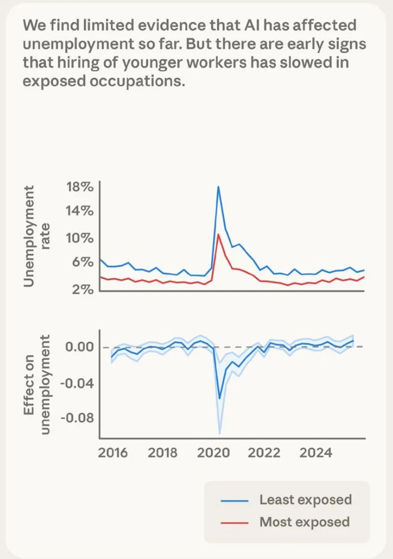 Anthropic的报告显示,现在失业率还没大涨。