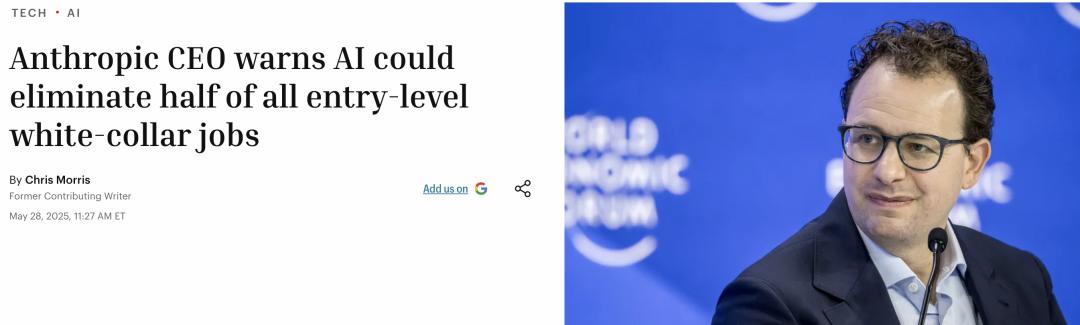 去年,他就警告:在1-5年内,AI可能干掉50%入门级白领岗位,让整体失业率冲到10-20%。