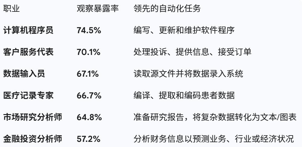 程序员排第一,其实让人并不意外,在现实工作场景中,Claude已经被大量用于编程任务。