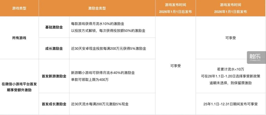 为了巩固优势,微信采取了一系列开发者激励政策。2025年11月,腾讯与苹果就小游戏分成达成协议,苹果将处理微信小游戏和应用中的支付事宜,并从中抽取15%分成。自2026年1月1日起,微信升级IAP小游戏激励政策,首发新游将享受“新游期”与“成长期”的双重激励,单款游戏首发激励金上限提升至400万元。这或许可以吸引更多中重度玩法产品优先在微信渠道发布。