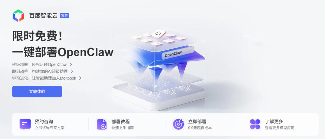 当然,大厂同样没闲着。百度是国内最早拥抱OpenClaw的头部厂商之一,从云端到移动端、从To B到To C,构建了全链路变现布局。2月3日,百度智能云率先上线OpenClaw一键部署服务,开启限时免费体验,开发者通过轻量应用服务器就能快速部署,还能借助千帆平台一键接入文心、DeepSeek、Qwen等主流大模型,相当于一站式配齐掘金工具。