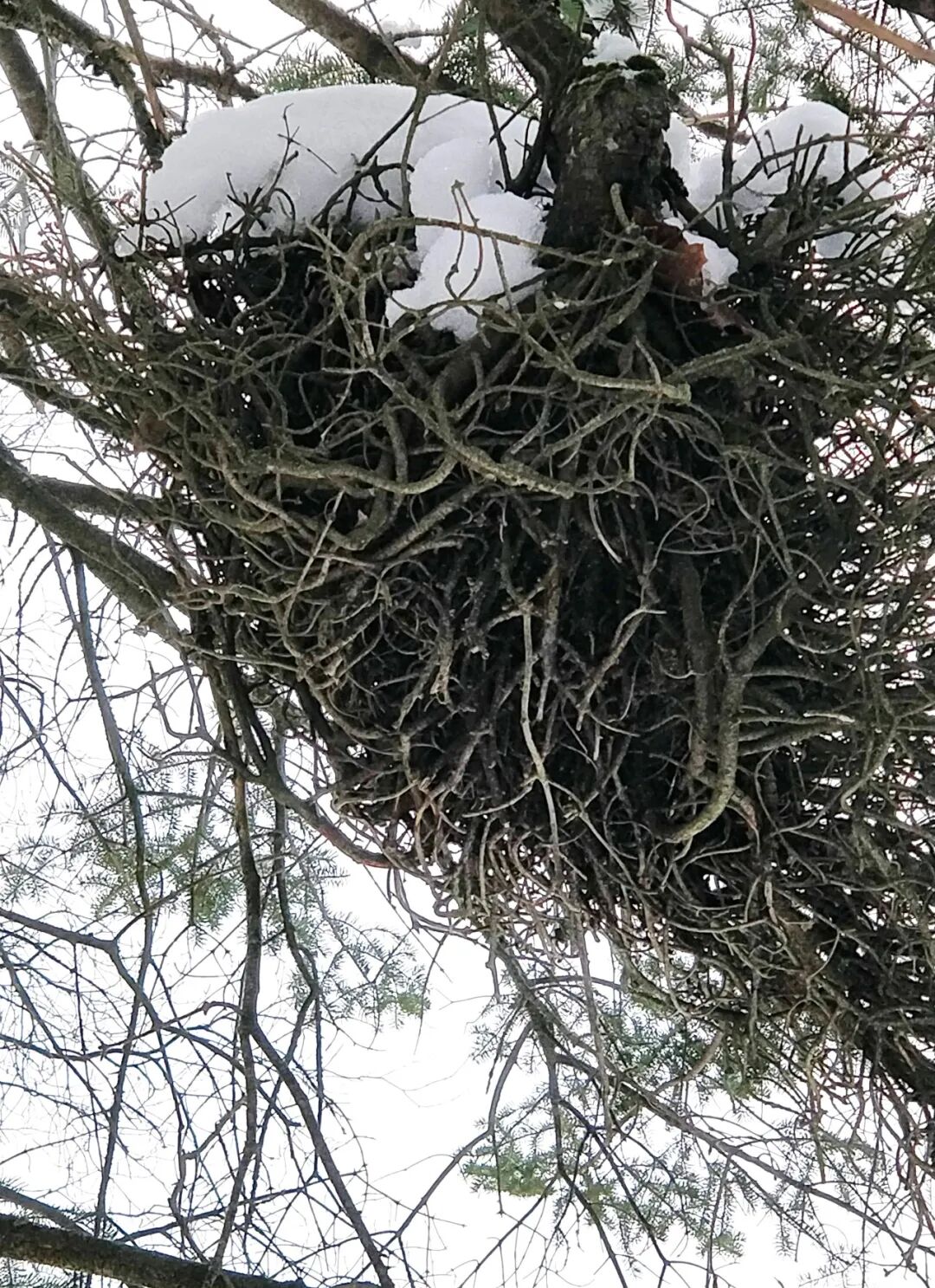 上面这张图就展示了一棵得上“女巫扫帚病”的树。这棵树上聚集着一团又一团的树枝。这可不是鸟类筑的巢,而是树木自己长出来的畸形结构。看起来,就像是树枝上长出了结节,树枝会自己扭曲、缠绕,原本应该延伸开来,却莫名其妙地扭在了一起。