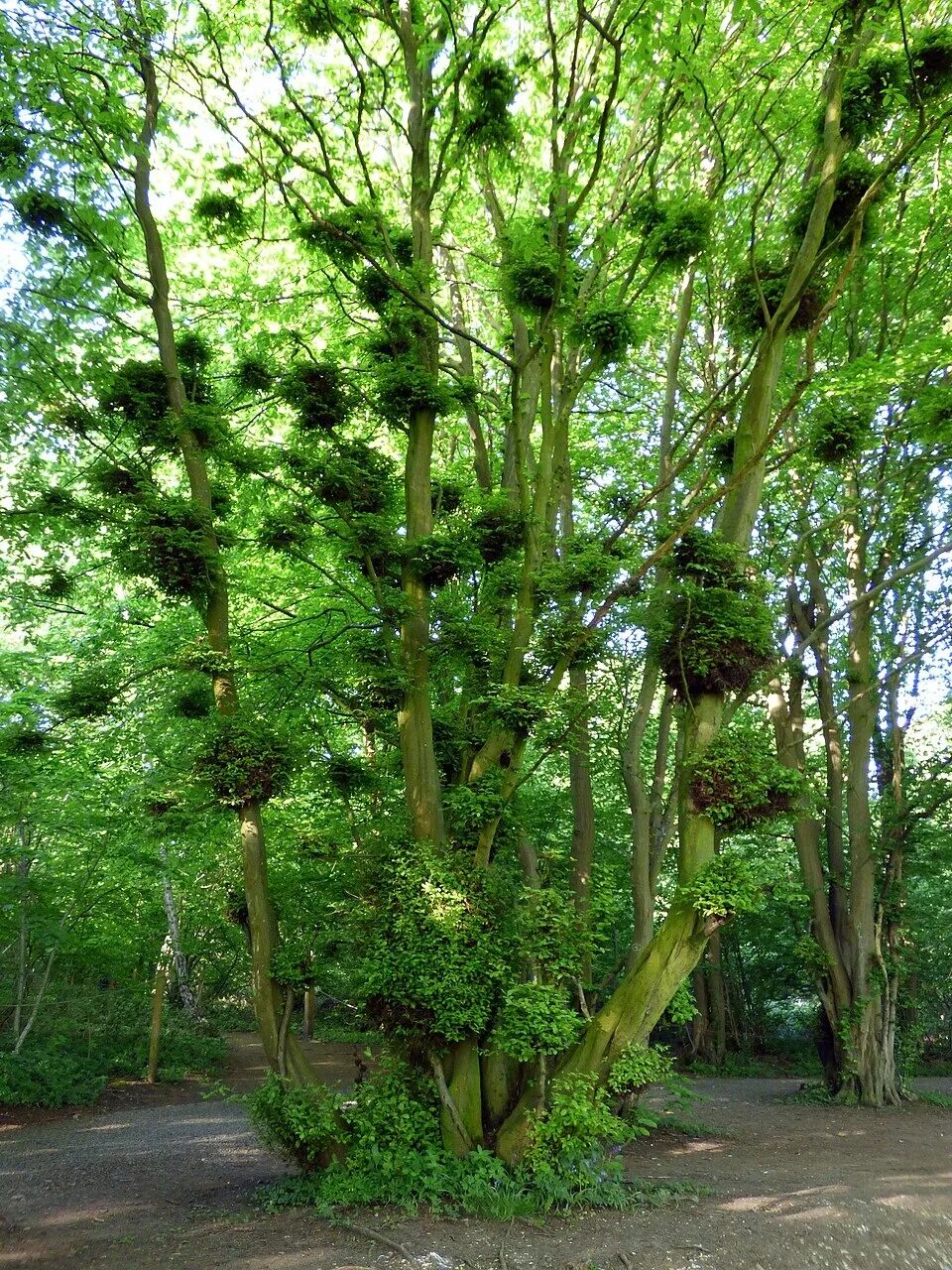 但当树被一些真菌和孢子感染,就会让树木内发生生理和激素变化。失去了生长素的调控,原本的侧枝开始疯长,形成一团一团的结构。而造成这种感染的,可能是风吹来的病毒细菌,也可能是一些寄生虫、寄生植物。