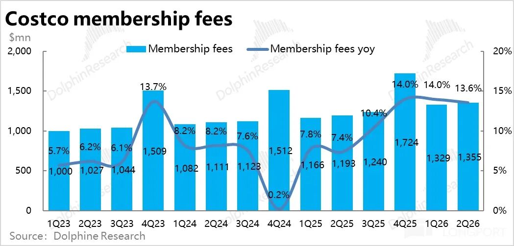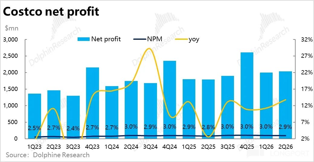 此外,本季度内 Costco 净新增了 4 家门店,开店节奏略有放缓(应当有年末假期影响),但下半财年会提速,全年开店计划还是在 28 家。