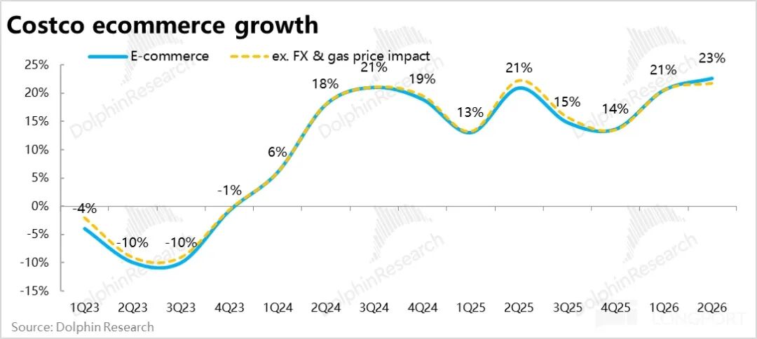作为后疫情时代的增长新动力,Costco 本季电商销售额同比增长近 23%,较上季继续提速,且明显好于预期。