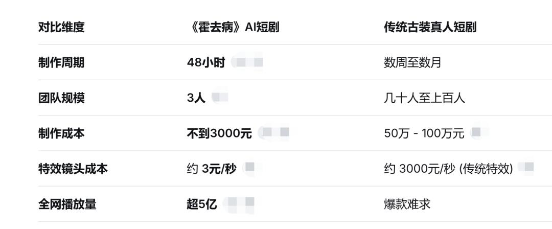 其次,成本结构彻底重构。以后投一部剧,可能不再需要到处找资金、拉投资。3000块的成本,对于很多内容创业者来说,几乎可以忽略不计。这意味着试错成本极低,题材的多样性会被极大激发。女频、悬疑、科幻,甚至极其小众的垂类,都可能因为成本优势而活下来 。