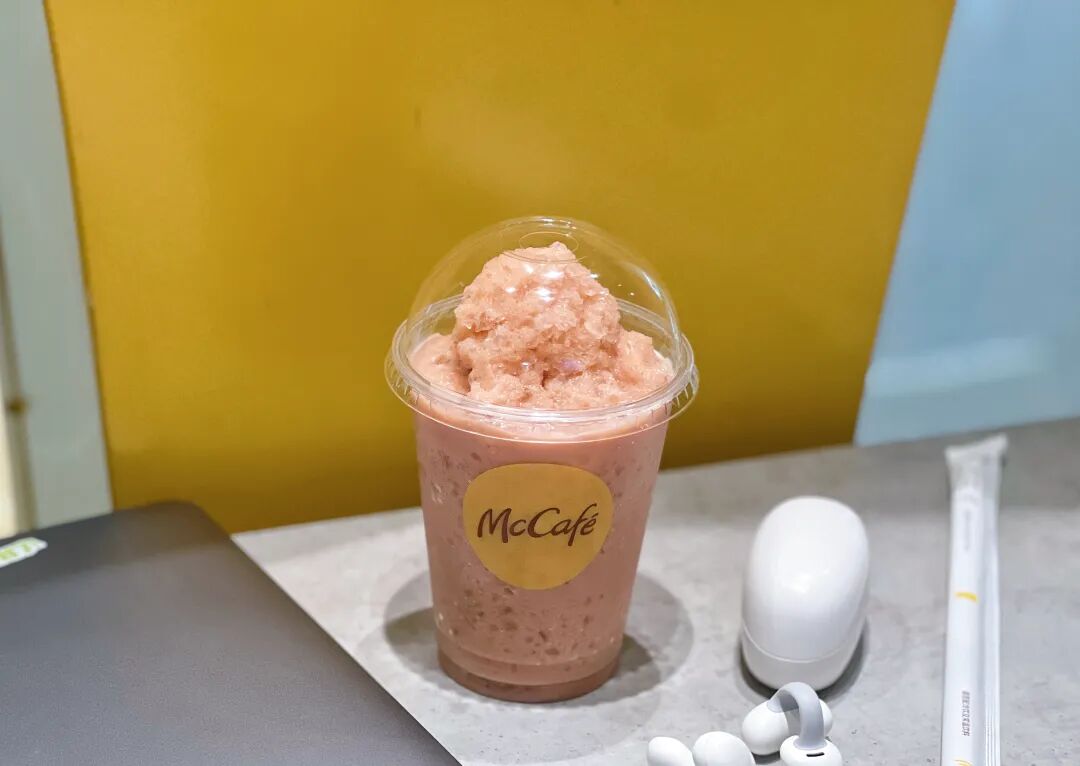 3月初,麦咖啡上架了一款“泰奶雪冰”,9.9元一杯,产品呈现泰式经典橘棕色,雪冰在杯中堆得像小山。“冰爽解腻,主打一个泰式松弛感。”