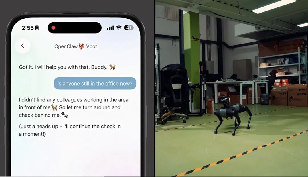 通过 OpenClaw 让机器狗更具主动性|图片来源:Vbot 视频截图