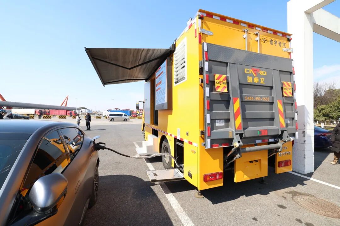 在枫泾服务区,和超充站互补的,不仅有直流快充桩,还有灵活便捷的移动充电驿站,可有效应对节假日充电高峰、设备临时检修等突发情况。