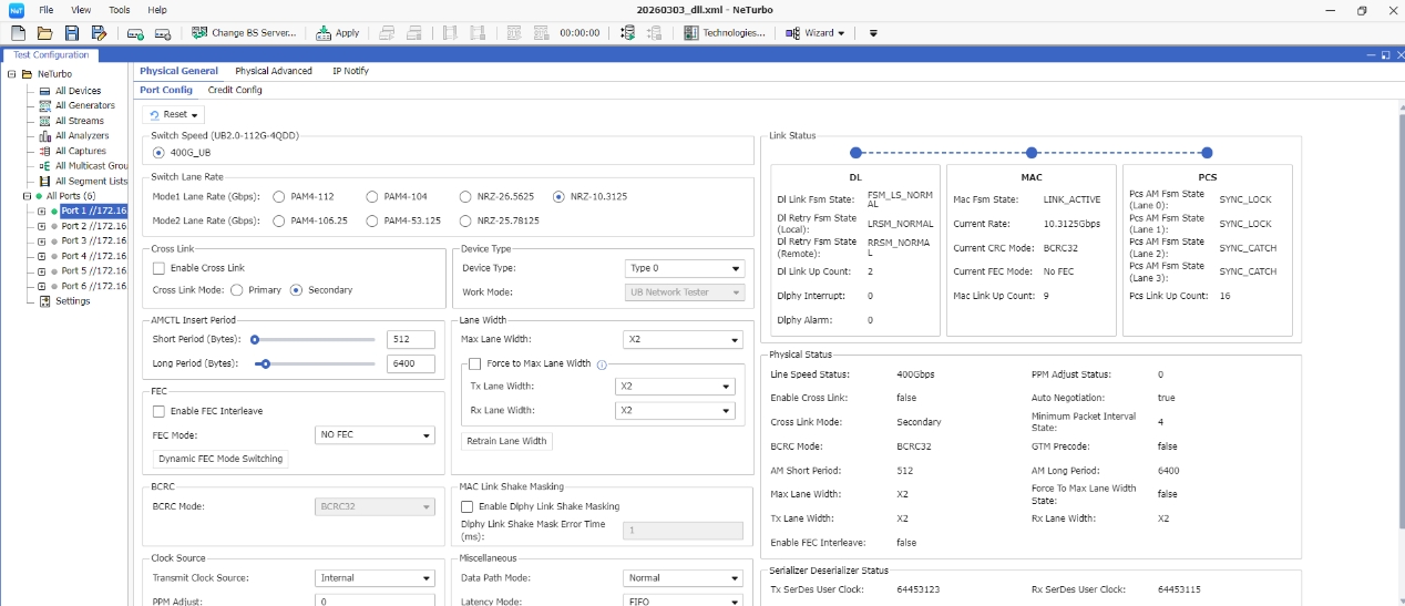 验证遵循UB2.0协议规范,覆盖物理编码子层、MAC子层及链路层协商功能。经万里眼标准UB网络测试仪一致性验证,链路建立稳定,数据传输准确,底层协议实现与规范要求高度一致,为后续与更多生态伙伴的互操作测试奠定了坚实基础。