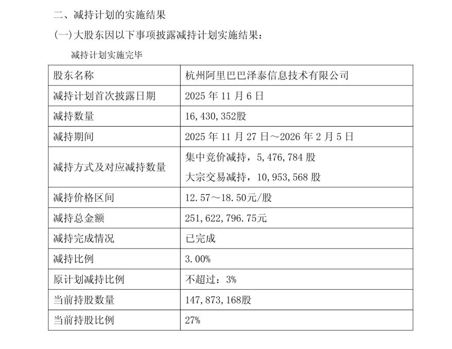 此外,阿里巴巴的资产调整战略也为双方合作的终止埋下了伏笔。从2024年开始,阿里巴巴就在出售或减持旗下多项非核心及传统实体零售资产,快狗打车、哔哩哔哩、网易云、丽人丽妆、银泰百货、高鑫零售等企业的股份交易也逐步落地。针对三江购物,阿里也启动了退出进程,自2025年8月起陆续减持股份,截至2026年2月6日,已减持5%股份,持股比例降至27%,双方合作的基础也随之弱化。