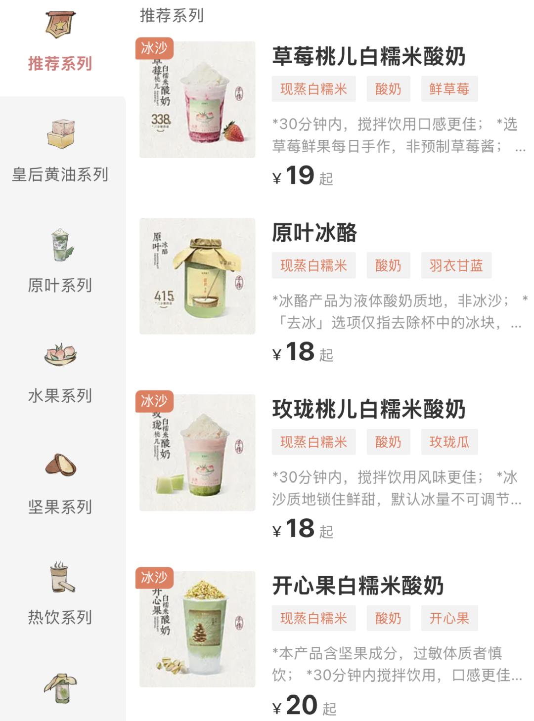 其将白糯米与酸奶进行结合,靠着现蒸白糯米酸奶的差异化产品,在新中式酸奶赛道快速崛起。从品牌的菜单中可以看到,其多数产品名都带有“白糯米”“米浆”等字样。红餐大数据显示,目前该品牌约有100余家门店,除了重庆大本营,还将门店拓展至了湖北、浙江、四川等省份。