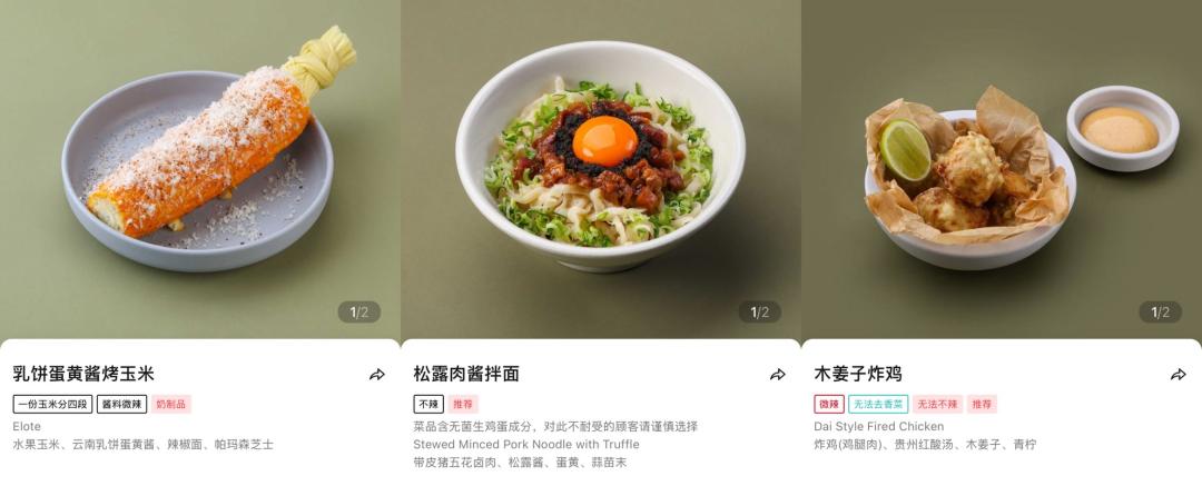 还比如主打云南风味的“胡麻”也是小而精的代表之一。品牌一开始就坚定选择走精致路线,有探店博主点评,胡麻留给他最深的印象之一是“产品非常少”。从菜单上看,胡麻的主食品类只有9个选择,撇开饮品,整个菜单也只有22道菜可供顾客选择。这一策略背后,是要在口感、摆盘设计、体验感上,把每一道菜做“精”。