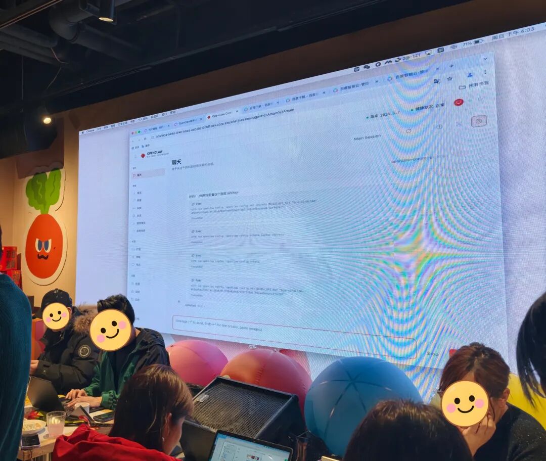 3月8日下午三点,上海徐汇区西岸的活动空间的长桌上,挤满了五十多台笔记本电脑,主办人五津站在屏幕前,拿着话筒努力讲解怎么部署OpenClaw。而闻讯赶来的打工人朱迪抱着自己的笔记本,根本无法找到空闲的位置,只能站着听这场耗资100多块的学习课。