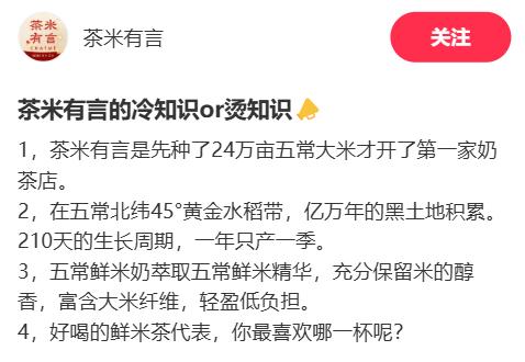 2024年,专注五常大米二十多年的五常市乔府大院农业股份有限公司(下称“乔府大院”),开设了茶饮品牌“茶米有言”。品牌自身也透露,种了24万亩五常大米后才开了第一家奶茶店。