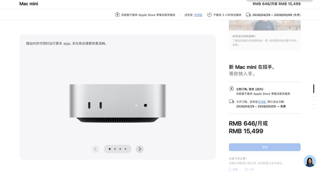 受此影响,Mac mini 在各大电商平台迅速售罄,苹果官网显示,现在下单最快要到 4 月底才能到手;并且一些二手平台上甚至衍生出了「租 Mac mini 养龙虾」的服务。