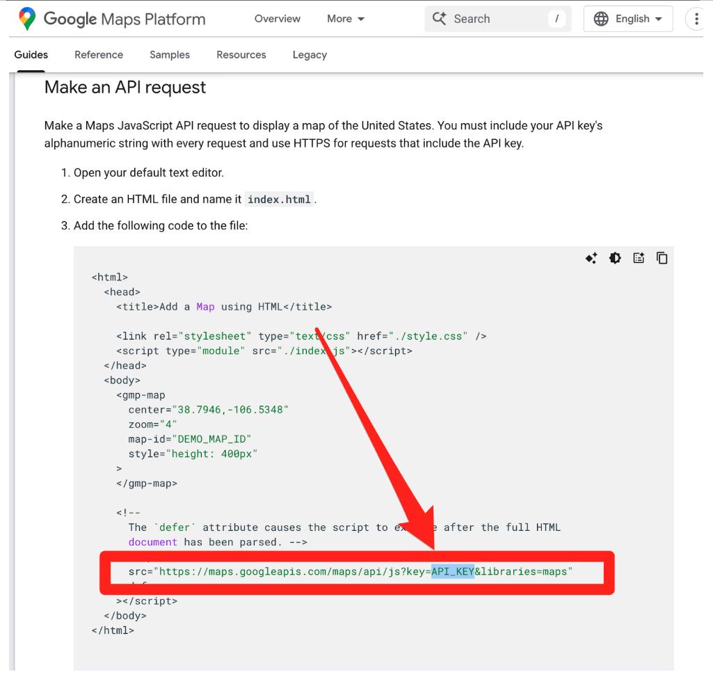 Google Maps JavaScript 文档还直接指示开发者将密钥直接粘贴到 HTML 中。