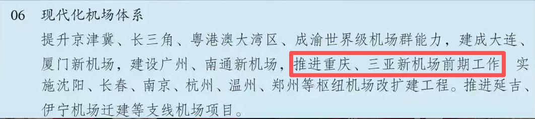 此外,此次与重庆新机场一同被列为“推进前期工作”的三亚新机场,其实早在“十四五”规划中就已出现。