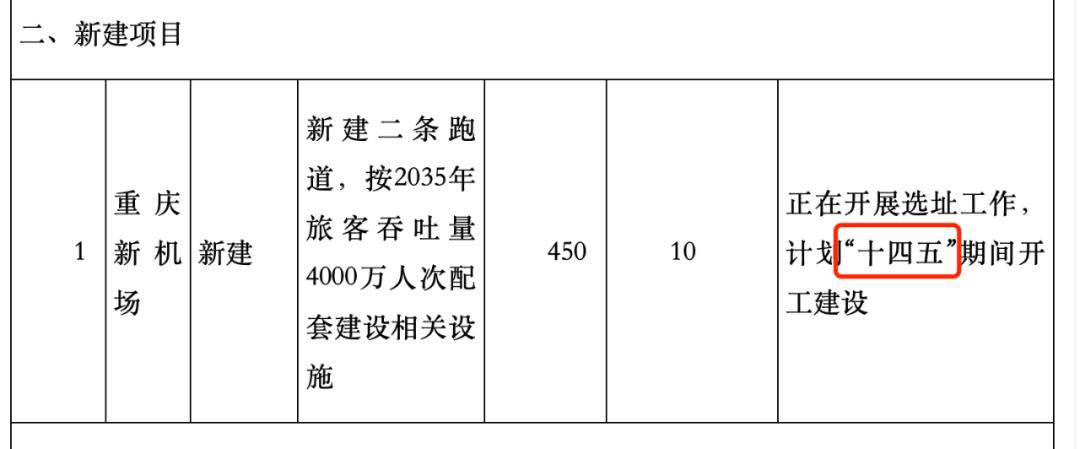 这其中,重庆新机场是首次被写入国家五年规划,意味着该项目已正式纳入国家重大工程建设范畴。