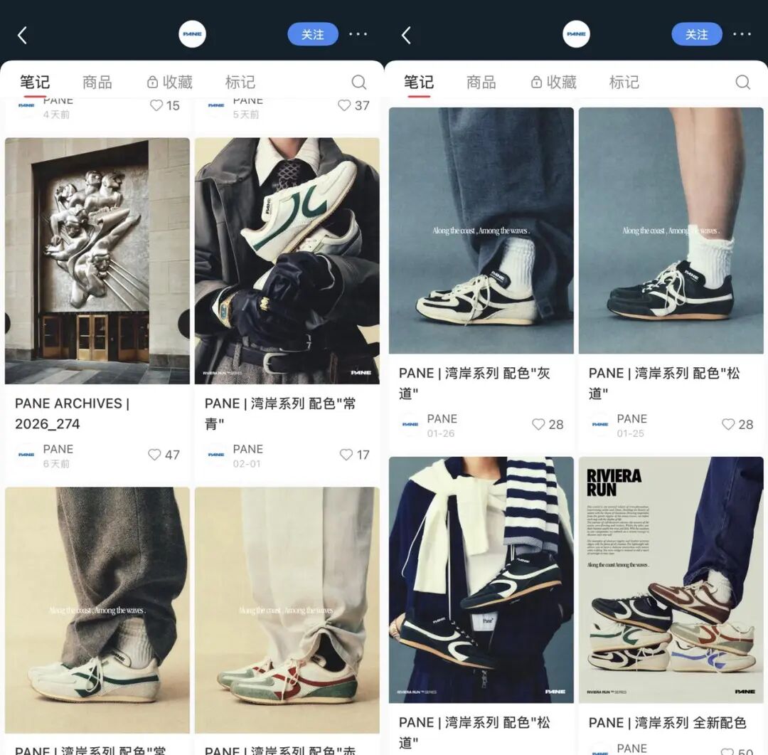 相较之下,也有一些国潮品牌,选择走更高价、更克制、讲“生活方式”的路线。像PANE 这样以德训鞋为核心的品牌,虽然也是通过明星和博主带货建立认知,但价位相对更高,并在北京、上海以高完成度的线下空间出圈,其目标用户明显与前述快消型国潮不同。