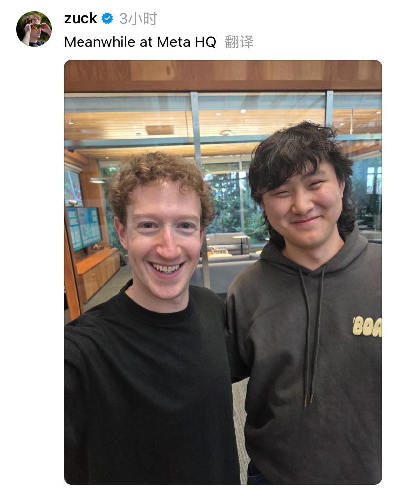 一张合照,小扎击碎了所有谣言。华裔天才、MSL首席AI官Alexandr Wang不会离职,牛油果模型期待一下吧。