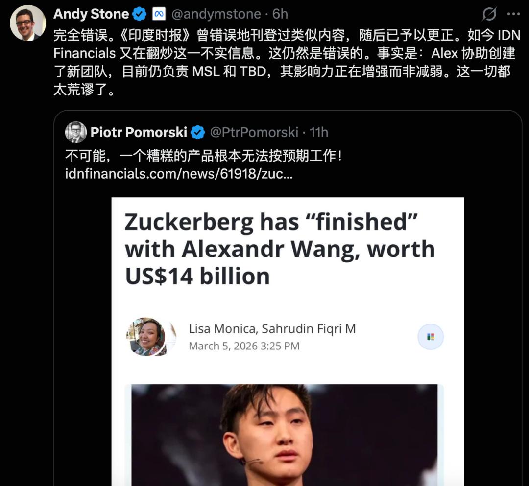 没想到的是,这次内部重组竟被外媒渲染成:Alexandr Wang已经出局。