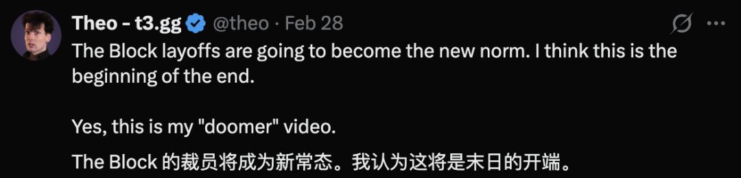 就在前几天,Block毫无征兆地裁掉了4000人,万人规模的团队被强行压缩到不足6000人。